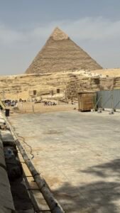 Tomé un tour temprano hacia las Pirámides de Giza. El trayecto fue breve, pero la emoción fue eterna. Cuando aparecieron en el horizonte, mi respiración se detuvo. No hay fotografía que logre capturar su inmensidad real. Caminarlas, tocarlas, rodearlas… fue caminar sobre la historia misma.